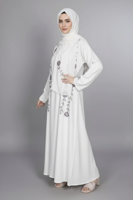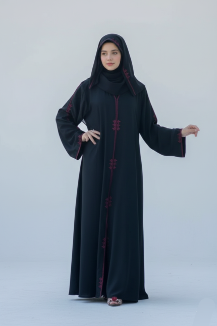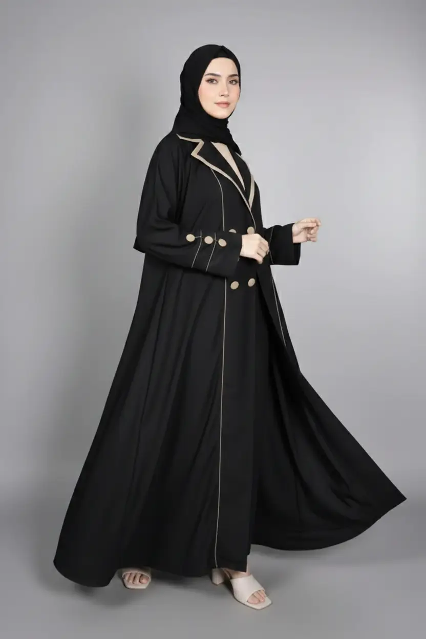 Ideal for work, casual outings, or semi-formal occasions, this abaya combines timeless elegance with a chic, modern edge, making it a versatile and sophisticated wardrobe essential.