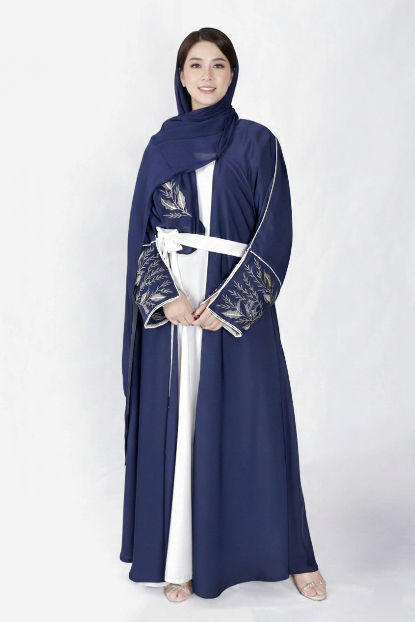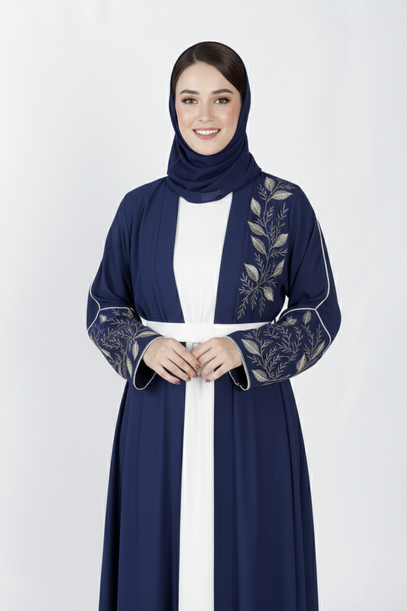 Intricate embroidery adds a touch of luxury and refinement, enhancing the overall design with delicate detailing. Perfect for formal events, festive gatherings, or special evenings, this abaya combines timeless elegance with artistic craftsmanship for a truly standout appearance.