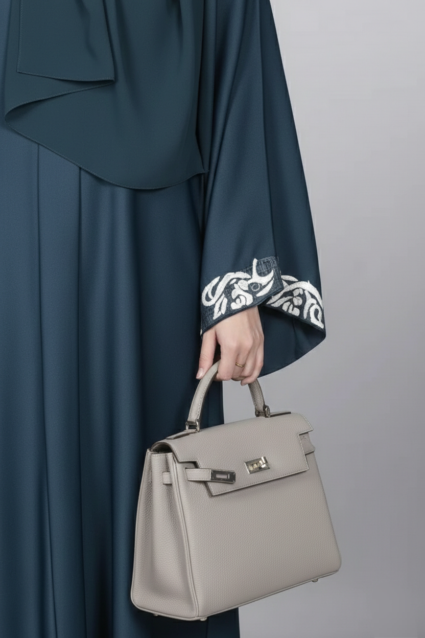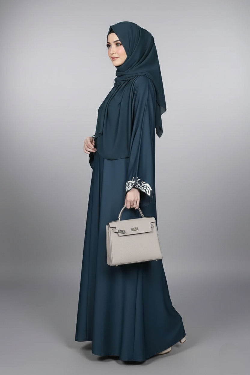 Stylish embroidery on the cuffs adds a refined, eye-catching detail, elevating the overall look with subtle charm. Perfect for work, festive events, or evening gatherings, this abaya combines classic elegance with modern, tasteful accents for a polished appearance.