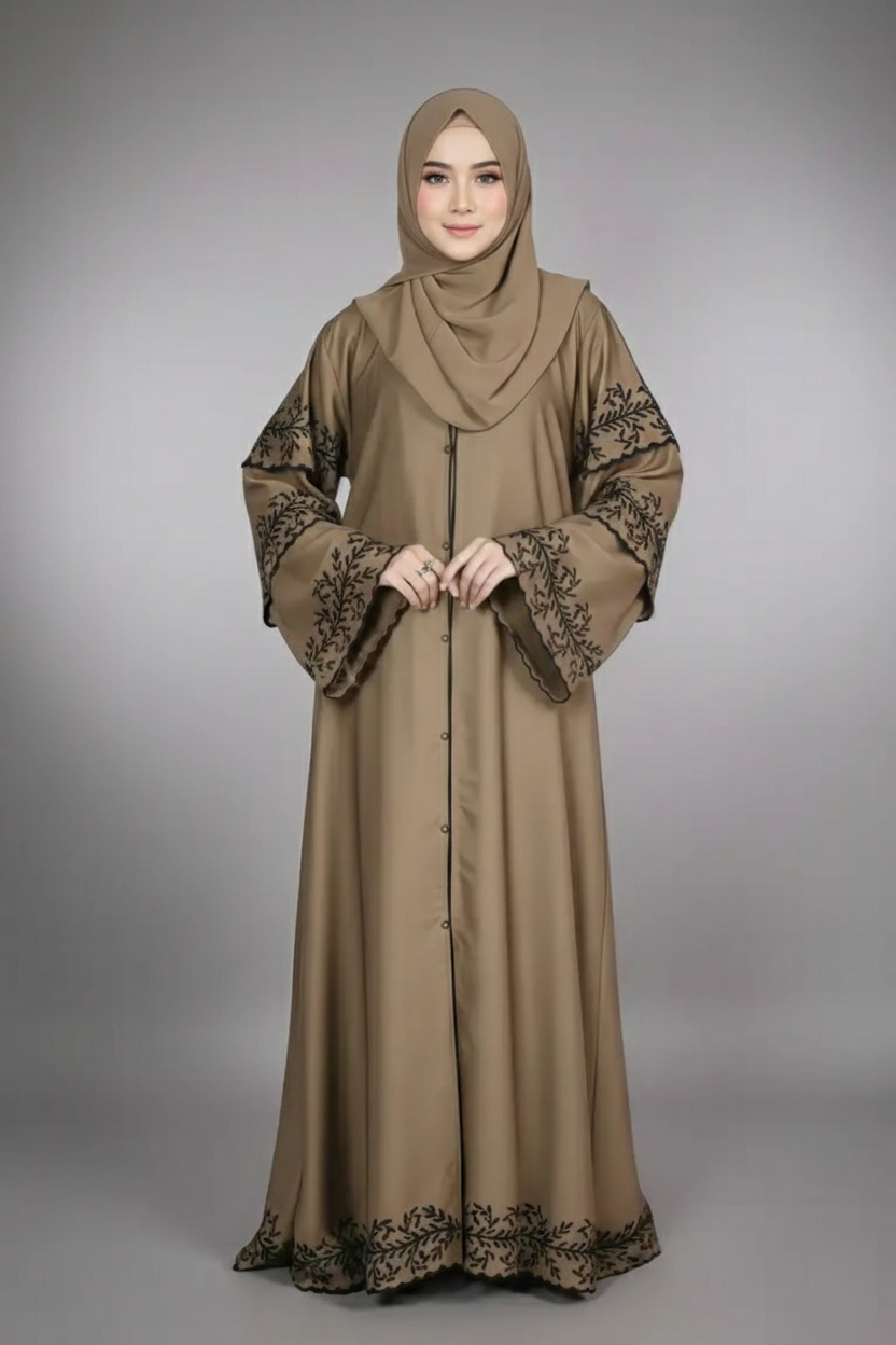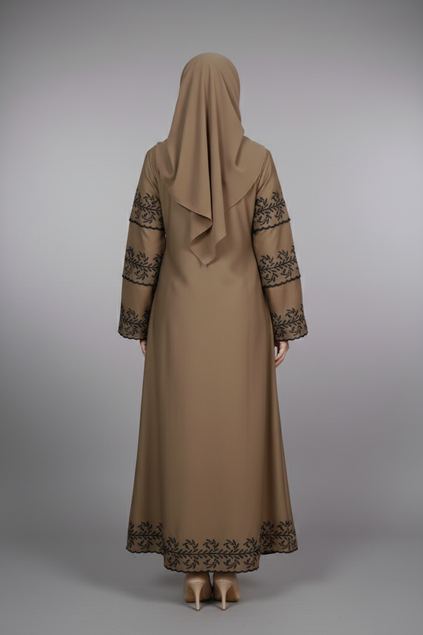 Be the first to review “Nida Front Open Gown Abaya, 3 Layers Embroidery On Arms With All Round Bottom” Cancel reply